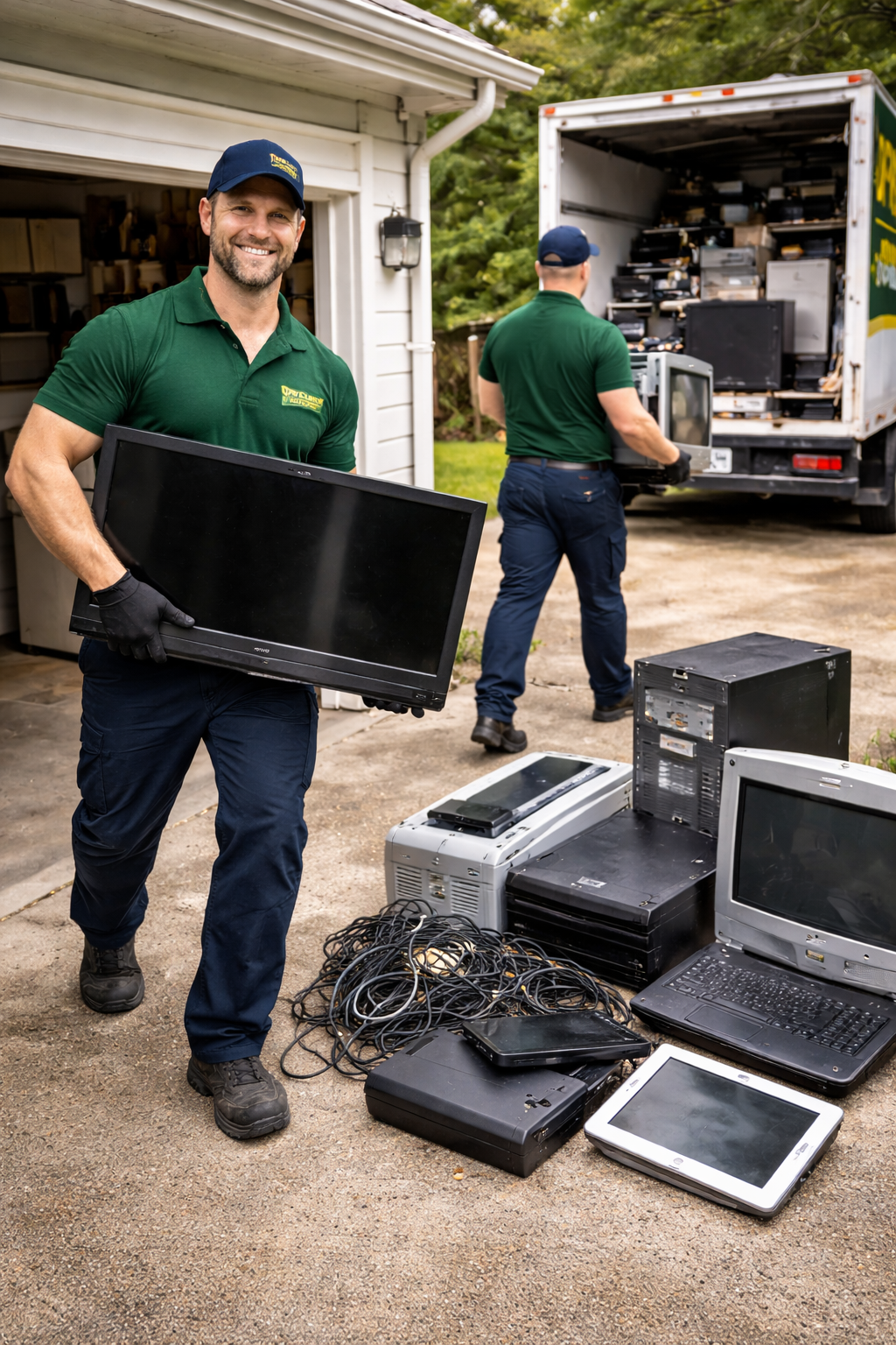 From a single broken TV in the corner to an entire room full of outdated electronics, we handle all the lifting, sorting, and hauling for you. Just show us where the e-waste is—stacked in a closet, piled in the garage, tucked under a desk, or spread across a home office—and Buster and the team take it from there. No loading your car, no tangled cords to wrestle with, and no hunting for recycling centers. You point—we remove it.
